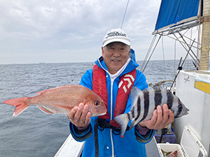 港南区の福島さん イシダイ 700gとマダイ1.0kg 剣崎沖